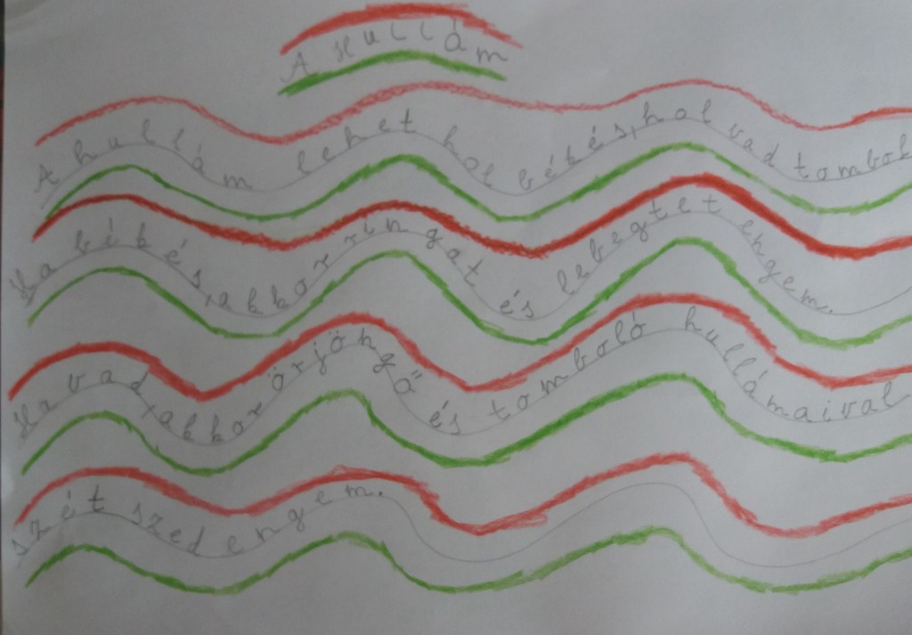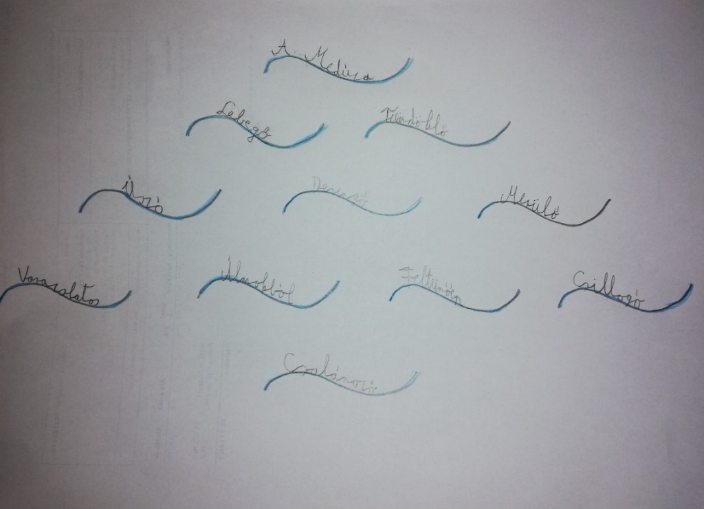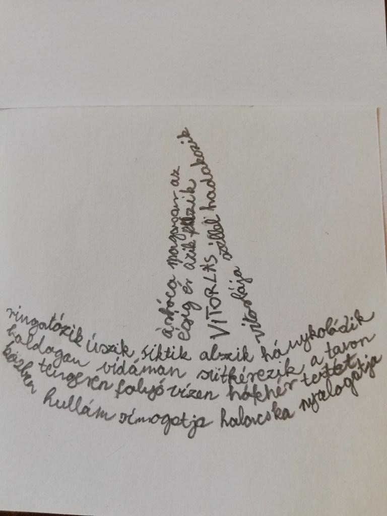 Ezzel egyidőben képverset is kértem tőlük, miután egy külön ppt-vel illusztrálva megmutattam nekik, mi is az a kalligram. Néhány a beküldöttek közül: