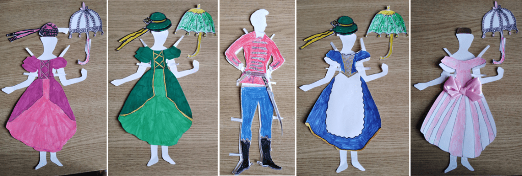 - 4. feladat: Készíts papírból hagyományos öltöztetőbabát, amit a különböző társadalmi osztályok viseleteibe öltöztetsz.
